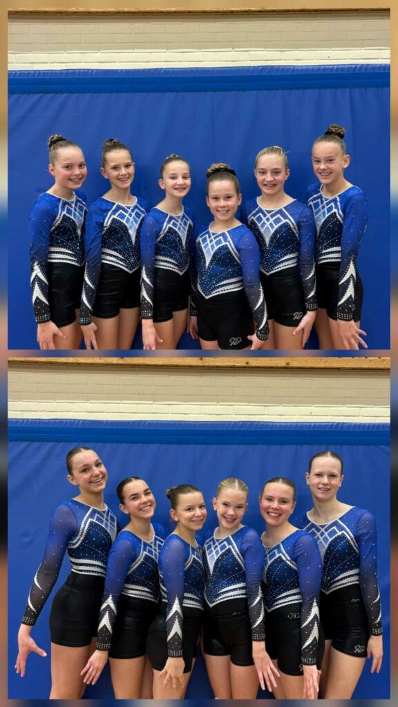 Het juniorenteam B2, bestaande uit Vera Dalhuisen, Layla Bruins, Tess Zwijnenberg, Emma Moes, Evi Ribberink en Dayenne Peter, nam voor het eerst in deze samenstelling deel aan een wedstrijd, wat de uitdaging extra groot maakte. Ze begonnen op het onderdeel minitrampoline pegasus. De afgelopen weken hebben ze hier intensief op getraind, ondanks de vooruitgang en hun inzet, zorgden een paar kleine foutjes ervoor dat ze zich op dit onderdeel helaas niet wisten te plaatsen. Vervolgens gingen de meiden naar minitrampoline. Ze sprongen netjes, lieten mooie uitvoeringen zien en enkele turnsters waagden zich zelfs aan een nieuwe sprong. Een knappe prestatie voor een team dat nog maar net met elkaar samenwerkt!