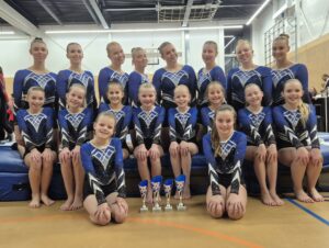 Ons samengestelde junioren B-team, bestaande uit Suze, Romy, Esmee, Linde, Loïs, Iris, Tess W, Emma en Layla, begon op de airtrack. Zij lieten mooie, nette sprongen zien en wisten daarmee een knappe derde plek te behalen. Vervolgens kwam ons junioren B2-team, bestaande uit Emma, Evi, Vera, Dayenne, Tess Z, en Layla, in actie op de trampoline pegasus. Dit jonge team toonde keurige sprongen met mooie landingen, en liet op dit toestel veel vooruitgang zien ten opzichte van de vorige wedstrijd.